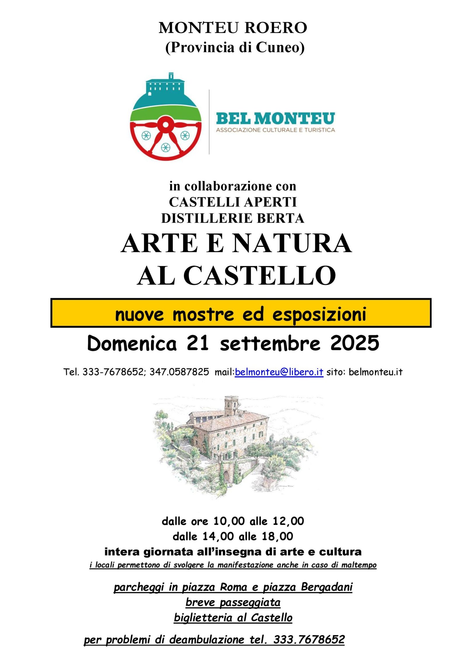 domenica 21 settembre intera giornata CASTELLO APERTO con ARTE E NATURA. Info tel. 333.7678652 e 3470587825